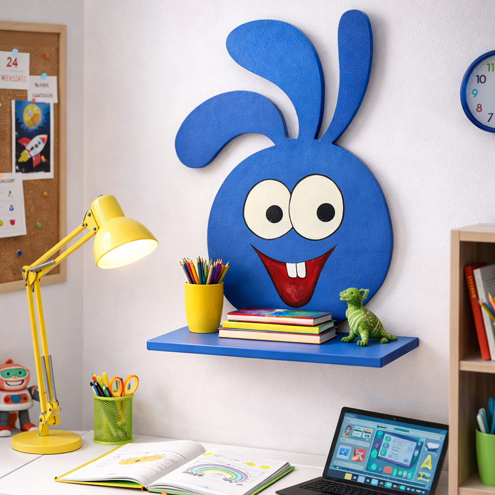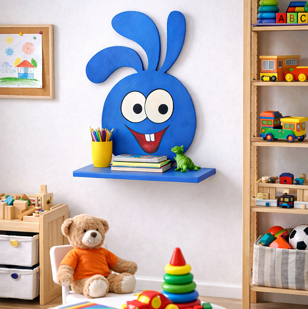 “A playful bunny-shaped wall shelf designed for kids’ rooms. Perfect for storing books, toys, and décor while adding a fun and cheerful touch to the space.”